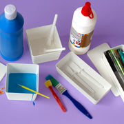 Kleine Basteltöpfe aus Kunststoff mit aufsteckbaren, wasserdichten Deckeln. Diese kleinen, undurchsichtigen weißen Behälter eignen sich ideal zur Aufbewahrung kleiner Gegenstände wie Perlen, Juwelen oder Verzierungen und eignen sich auch als Farb-, Leim- oder Wasserbehälter im Bastelraum oder im Klassenzimmer.